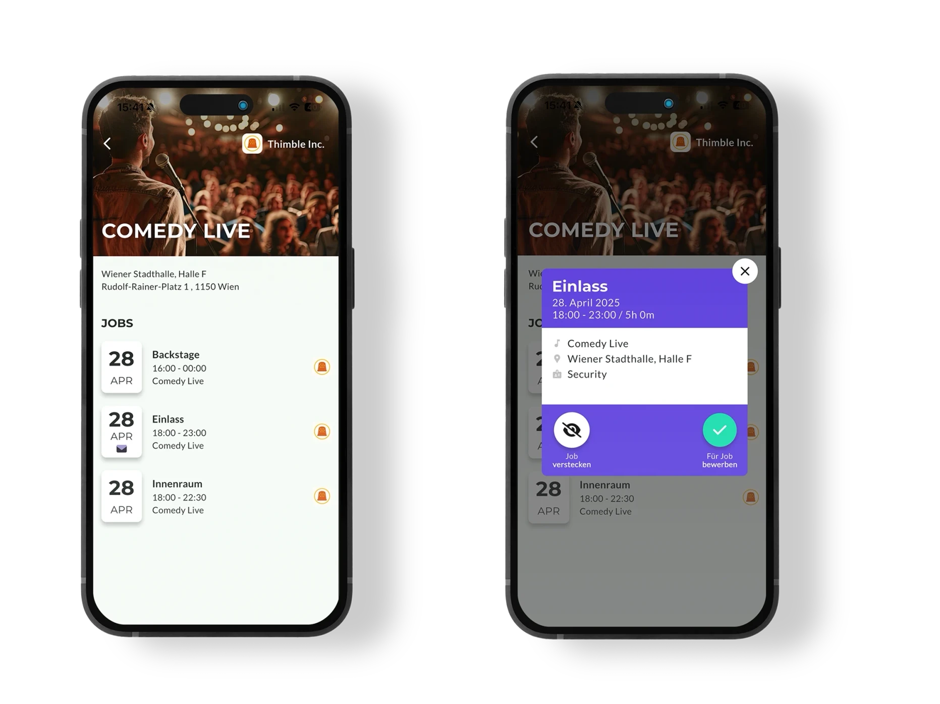 Neben der mobilen App bietet Flagshift auch eine browserbasierte Web-Ansicht. Mitarbeitende können dort ihre Dienste einsehen, Bewerbungen abgeben und persönliche Daten verwalten – perfekt auch für Personen ohne Smartphone.